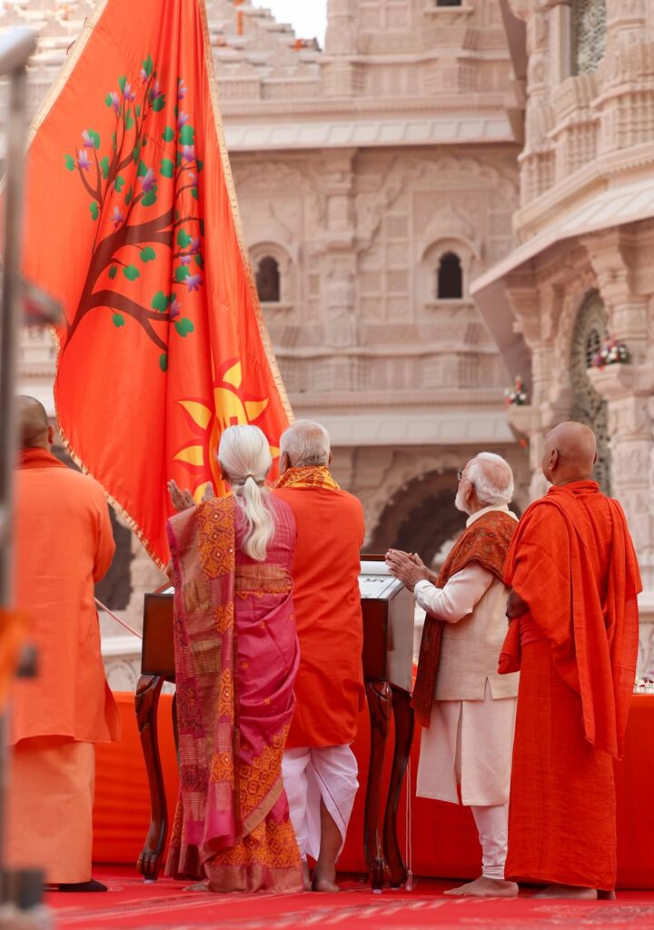 ಬಳಸಲಾಗುತ್ತಿತ್ತು. ಮಹಾಭಾರತ ಯುದ್ಧ ನಡೆಯುವಾಗ ಅಯೋಧ್ಯೆಯ ದೊರೆ ಬೃಹದ್ಬಲ ಭಾಗವಹಿಸಿದ್ದ. ಯುದ್ಧದಲ್ಲಿ ಆತ ಮರಣಿಸಿದ ಬಳಿಕ ಅಯೋಧ್ಯೆ ನಶಿಸಿತು, ಧ್ವಜದ ಕಲ್ಪನೆಯೂ ಕಣ್ಮರೆಯಾಯಿತು. ಈಗ ಮತ್ತೆ ಅದು ಮುನ್ನೆಲೆಗೆ ಬಂದಿರುವುದು ಸಂತೋಷ ತಂದಿದೆ’ ಎಂದರು.