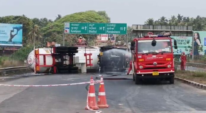 ಉಡುಪಿ : ಕಟಪಾಡಿ ಬಳಿ ಗ್ಯಾಸ್ ಟ್ಯಾಂಕರ್ ಪಲ್ಟಿಯಾಗಿ ಸೋರಿಕೆ : ಅಗ್ನಿಶಾಮಕ ದಳದಿಂದ ತುರ್ತು ಕಾರ್ಯಾಚರಣೆ.