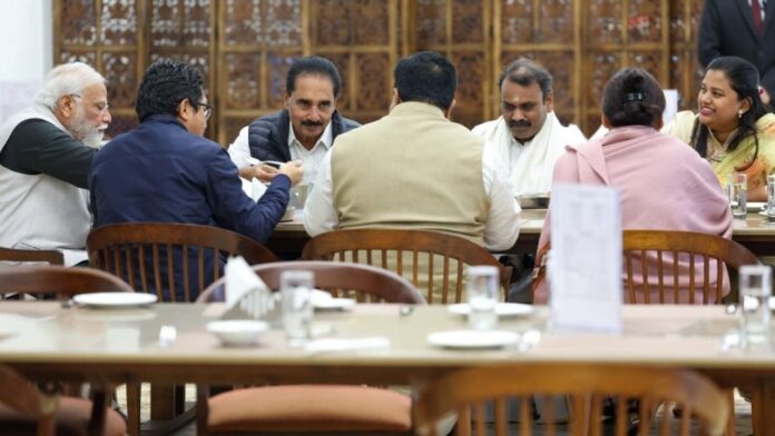 ನವದೆಹಲಿ : 2024ರ ಲೋಕಸಭೆ ಚುನಾವಣೆಗೂ ಮುನ್ನ ಸಂಸತ್ತಿನ ಅಂತಿಮ ಅಧಿವೇಶನ ನಡೆಯುತ್ತಿರುವುದರಿಂದ ಪ್ರಧಾನಿ ನರೇಂದ್ರ ಮೋದಿ ಅವರು ಸಂಸತ್ತಿನ ಕ್ಯಾಂಟೀನ್ನಲ್ಲಿ ಸಂಸದರಿಗೆ ಉಪಾಹಾರ ಕೂಟ ಏರ್ಪಡಿಸಿದ್ದರು. ಸಂಸತ್ ಕ್ಯಾಂಟೀನ್ಗೆ ಅನಿರೀಕ್ಷಿತವಾಗಿ ಬಂದ ಪ್ರಧಾನಿಯವರನ್ನು ನೋಡಿ ಸಂಸದರು ಆಶ್ಚರ್ಯಚಕಿತರಾಗಿದ್ದಾರೆ.