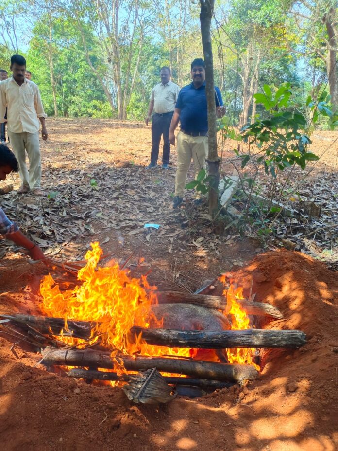 ಮೃತ ಹಂದಿಯ ಕಳೇಬರವನ್ನ ಅರಣ್ಯ ಇಲಾಖೆಯವರಿಂದ ಅಂತ್ಯಸಂಸ್ಕಾರ ಮಾಡಿದ್ದಾರೆಂದು ಅಧಿಕಾರಿಗಳು ವಿಡಿಯೋ ಹಾಗೂ ಫೋಟೋ ಮೂಲಕ ತಿಳಿಸಿದ್ದಾರೆ.