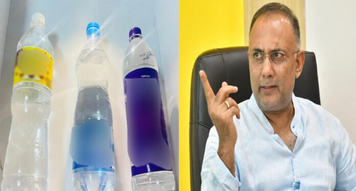 ಬೆಂಗಳೂರು : ರಾಜ್ಯದಲ್ಲಿ ಗೋಬಿ ಮಂಚೂರಿ, ಕಾಟನ್ ಕ್ಯಾಂಡಿ,ಹಸಿರು ಬಟಾಣಿ ಬಳಿಕ ನೀರಿನ ಬಾಟಲಿಯ ಸರದಿ ಉಂಟಾಗಿದೆ. ಕಲರ್ ಕಾಟನ್ ಕ್ಯಾಂಡಿ ಬಳಕೆಯನ್ನು ರಾಜ್ಯ ಸರ್ಕಾರ ನಿಷೇಧಿಸಿ ಆದೇಶ ಹೊರಡಿಸಿತ್ತು ಕೃತಕ ಬಣ್ಣ ಬಳಸುವುದರಿಂದ ಆರೋಗ್ಯದ ಮೇಲೆ ಭಾರೀ ದುಷ್ಪರಿಣಾಮ ಬೀರುವುದರಿಂದ ಕಲರ್ ಕಾಟನ್ ಕ್ಯಾಂಡಿಯನ್ನು ನಿಷೇಧಿಸಲಾಗಿತ್ತು ಜೊತೆಗೆ ಗೋಬಿ ಮಂಚೂರಿ ತಯಾರಿಸುವಾಗ ಕೃತಕ ಬಣ್ಣ ಬಳಸುವುದನ್ನು ಕೂಡ ನಿಷೇಧಿಸಿ ಸರ್ಕಾರ ಆದೇಶಿಸಿತ್ತು