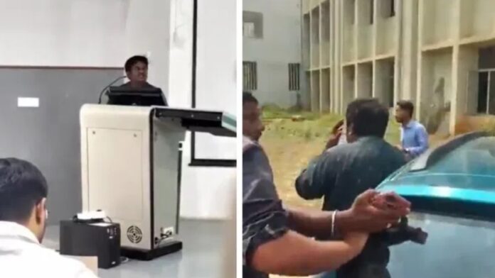ವಿದ್ಯಾರ್ಥಿನಿಯ ಆಕ್ರೋಶ ಕಂಡು ಕಕ್ಕಾಬಿಕ್ಕಿಯಾದ ಲೆಕ್ಚರರ್, ಈ ಬಗ್ಗೆ ನಾಳೆ ಮಾತನಾಡುತ್ತೇನೆ ಎಂದು ಹೇಳಿ ಕ್ಲಾಸ್ ರೂಮ್‌ನಿಂದ ಹೊರನಡೆಯಲು ಯತ್ನಿಸಿದ್ದಾನೆ. ಇದರಿಂದ ಆಕ್ರೋಶಗೊಂಡ ವಿದ್ಯಾರ್ಥಿನಿ, ಚಪ್ಪಲಿ ತೆಗೆದು ಪ್ರೊಫೆಸರ್‌ಗೆ ತರಗತಿಯಲ್ಲೇ ಥಳಿಸಿದ್ದಾಳೆ. ಈ ಸಂದರ್ಭದಲ್ಲಿ ವಿದ್ಯಾರ್ಥಿನಿಯ ಪರ ನಿಂತ ಇತರೆ ವಿದ್ಯಾರ್ಥಿಗಳು ಸಹ ಪ್ರಾಧ್ಯಾಪಕನಿಗೆ ಜೊತೆಗೆ ವಾಗ್ವಾದಕ್ಕಿಳಿದು ಹಲ್ಲೆ ನಡೆಸಿದ್ದಾರೆ.