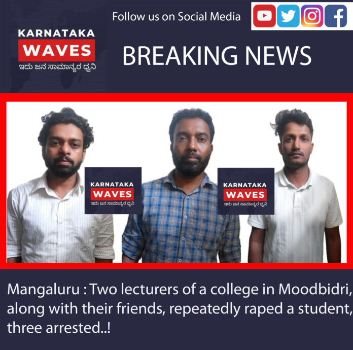 ಬೆಂಗಳೂರು : ಅತ್ಯಾಚಾರ ಪ್ರಕರಣವೊಂದರಲ್ಲಿ ದಕ್ಷಿಣ ಕನ್ನಡ ಜಿಲ್ಲೆಯ ಮೂಡುಬಿದಿರೆಯ ಕಾಲೇಜೊಂದರ ಇಬ್ಬರು ಉಪನ್ಯಾಸಕರು ಹಾಗೂ ಅವರ ಸ್ನೇಹಿತನನ್ನು ಪೊಲೀಸರು ಬಂಧಿಸಿದ್ದಾರೆ. ಬಂಧಿತರನ್ನು ಫಿಸಿಕ್ಸ್ ಉಪನ್ಯಾಸಕ ನರೇಂದ್ರ, ಬಯೋಲಜಿ ಲೆಚ್ಚರ್ ಸಂದೀಪ್ ಹಾಗೂ ಅವರ ಗೆಳೆಯ ಅನೂಪ್ ಎಂದು ಗುರುತಿಸಲಾಗಿದೆ. ವಿದ್ಯಾರ್ಥಿನಿ ಮೇಲೆ ನಿರಂತರ ಅತ್ಯಾಚಾರ ಎಸಗಿದ ಆರೋಪ ಸಂಬಂಧ ಬೆಂಗಳೂರಿನ ಮಾರತಹಳ್ಳಿ ಪೊಲೀಸ್ ಠಾಣೆಯಲ್ಲಿ ಪ್ರಕರಣ ದಾಖಲಾಗಿದೆ.
