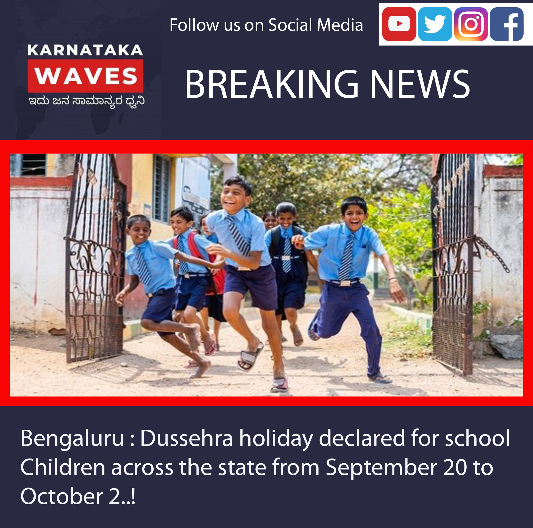 ಪ್ರಸಕ್ತ ಶೈಕ್ಷಣಿಕ ವರ್ಷದ ಹಬ್ಬದ ರಜೆಗಳು ನಾಳೆ, ಸೆಪ್ಟೆಂಬರ್ 20 ರಿಂದ ಪ್ರಾರಂಭವಾಗಲಿವೆ. ವಿಶ್ವವಿಖ್ಯಾತ ಮೈಸೂರು ದಸರಾ ಉತ್ಸವಗಳನ್ನು ಶಾಲಾ ಮಕ್ಕಳು ವೀಕ್ಷಿಸಲು ಅನುಕೂಲವಾಗುವಂತೆ, ಶಿಕ್ಷಣ ಇಲಾಖೆ ಸರ್ಕಾರಿ ಶಾಲೆಗಳಿಗೆ 18 ದಿನಗಳ ರಜೆ ಘೋಷಿಸಿದೆ.
