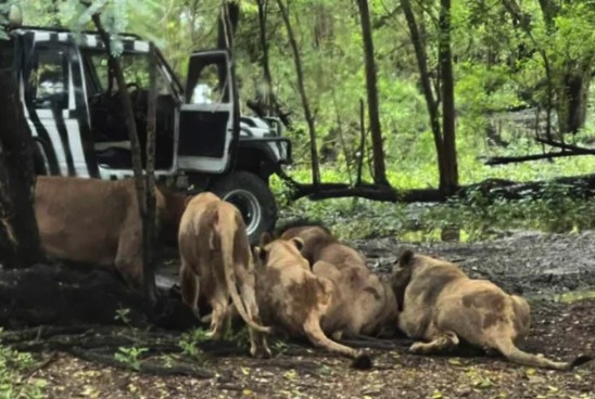 ಬ್ಯಾಂಕಾಕ್ : ಥಾಯ್ಲೆಂಡ್ನ ಮೃಗಾಲಯದಲ್ಲಿ ಸಫಾರಿ ಜೀಪ್ನಿಂದ ಕೆಳಗಿಳಿದ ಸಿಬ್ಬಂದಿಯನ್ನೇ ಸಿಂಹಗಳ ಗುಂಪೊಂದು ಎಳೆದೊಯ್ದು