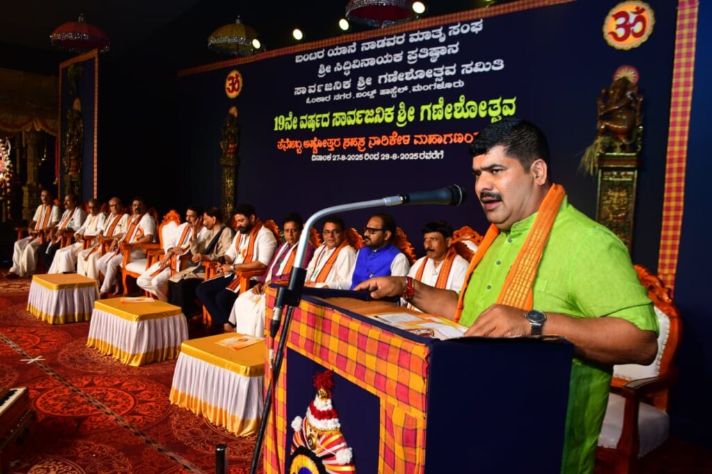 ಅವರು ಮಂಗಳೂರಿನ ಬಂಟ್ಸ್ ಹಾಸ್ಟೆಲ್ ನಲ್ಲಿ ಬಂಟರ ಯಾನೆ ನಾಡವರ ಮಾತೃ ಸಂಘ, ಶ್ರೀ ಸಿದ್ದಿವಿನಾಯಕ ಪ್ರತಿಷ್ಠಾನ ಹಾಗೂ ಸಾರ್ವಜನಿಕ ಶ್ರೀ ಗಣೇಶೋತ್ಸವ ಸಮಿತಿಯಿಂದ ನಡೆಯುತ್ತಿರುವ 19ನೇ ವರ್ಷದ ಸಾರ್ವಜನಿಕ ಶ್ರೀ ಗಣೇಶೋತ್ಸವದ ಶೋಭಾಯಾತ್ರೆಗೆ ಚಾಲನೆ ನೀಡಿ ಮಾತನಾಡಿದರು.