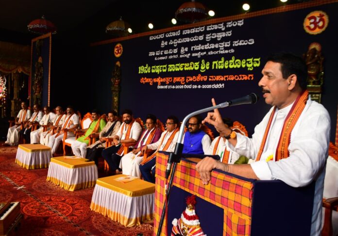 ಮಂಗಳೂರು : ಸಂಸ್ಕಾರಯುತ ಸಮಾಜ ನಿರ್ಮಾಣಕ್ಕೆ ಗಣೇಶೋತ್ಸವ ಪೂರಕವಾಗಿದ್ದು, ಆಡಂಬರವಿಲ್ಲದೆ ಇಲ್ಲಿ ಕೇವಲ ದೇವರ ಸಂಕೀರ್ತನೆಯ ಭಜನೆಯ ಮೂಲಕ ಗಣಪತಿಯ ಶೋಭಾಯಾತ್ರೆ ಸಾಗುವುದು ಎಲ್ಲರಿಗೂ ಮಾದರಿಯಾಗಿದೆ ಎಂದು ಮಾಜಿ ಸಂಸದ ನಳಿನ್ ಕುಮಾರ್ ಕಟೀಲ್ ಹೇಳಿದರು.