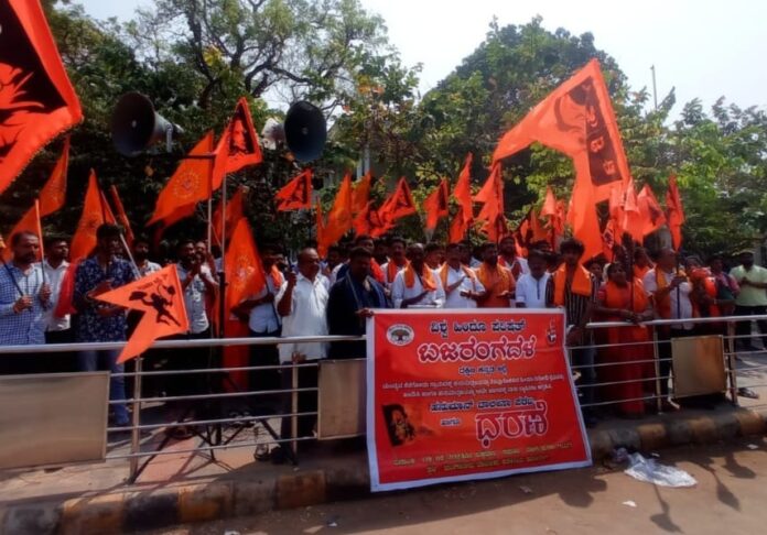 ಮಂಗಳೂರು : ಮಂಡ್ಯತಾಲೂಕಿನ ಕೆರಗೋಡಿನಲ್ಲಿನ ಹನುಮ ಧ್ವಜವನ್ನು ತೆರವುಗೊಳಿಸಿದನ್ನು ಖಂಡಿಸಿ ಬಜರಂಗದಳ ಮತ್ತು ವಿಶ್ವ ಹಿಂದೂ ಪರಿಷತ್ ಮಂಗಳೂರು ತಾಲೂಕು ಕಚೇರಿ ಎದುರು ಪ್ರತಿಭಟನೆ ನಡೆಸಿತು. ಬಜರಂಗದಳ ಮತ್ತು ವಿಹೆಚ್ಪಿ ಕಾರ್ಯಕರ್ತರು ಹನುಮಾನ್ ಚಾಲೀಸಾ ಪಠಣೆ ಮಾಡಿದರು ಹಿಂದೂ ವಿರೋಧಿ ಸಿದ್ದರಾಮಯ್ಯ ಸರಕಾರದ ವಿದುದ್ದ ಘೋಷಣೆ ಕೂಗಿದರು.