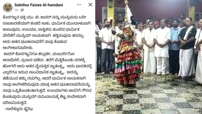 ಕರ್ನಾಟಕ ರಾಜ್ಯದ ವಿಧಾನ ಸಭಾಧ್ಯಕ್ಷ ಯು ಟಿ ಖಾದರ್ ಅವರು ಬಂಟ್ವಾಳ ತಾಲೂಕಿನ ಶ್ರೀ ಕ್ಷೇತ್ರ ಪನೋಲಿ ಬೈಲ್ನಲ್ಲಿ ನಡೆದ ತುಳುನಾಡಿನ ಕಾರ್ಣಿಕ ದೈವಗಳ ಹರಕೆ ಕೋಲ ನೆರವೇರಿಸಿ ಕಲ್ಲುರ್ಟಿ ಕಲ್ಕುಡ ದೈವಗಳ ಹರಕೆ ಕೋಲದಲ್ಲಿ ಭಾಗವಹಿಸಿ ಕಾರ್ಣಿಕ ದೈವಗಳಾದ ಕಲ್ಲುರ್ಟಿ ಕಲ್ಕುಡ ದೈವಗಳ ಆಶೀರ್ವಾದ ಪಡೆಡಿದ್ದರು.ಈ ಬಗ್ಗೆ ಯು.ಟಿ ಖಾದರ್ ವಿರುದ್ಧ ಮುಸ್ಲಿಂ ಮುಖಂಡನೋರ್ವ ವಿರೋಧ ವ್ಯಕ್ತಪಡಿಸಿದ್ದಾರೆ.ಮುಸ್ಲಿಂ ಧಾರ್ಮಿಕ ಮುಖಂಡ ಸಾಲೆತ್ತೂರು ಫೈಝಿ ಎಂಬುವವರು ಯು.ಟಿ. ಖಾದರ್ ಬಗ್ಗೆ ಆಕ್ಷೇಪಿಸಿ ಸಾಮಾಜಿಕ ಜಾಲತಾಣದಲ್ಲಿ ಪೋಸ್ಟ್ ಹಾಕಿದ್ದು ಉಲೆಮಾ, ಸಾತ್ವಿಕರು ತುಂಬಿದ ಧಾರ್ಮಿಕ ವೇದಿಕೆಗೆ ಮುಸ್ಲಿಂ ನಾಯಕನಾಗಿ ಹತ್ತಿಸುವುದು ತರವಲ್ಲ. ಅದು ಆತನ ಭೂತಾರಾಧನೆಗೆ ನಾವು ಕೊಡುವ ಅಂಗೀಕಾರವಾಗಿತ್ತೆ. ಖಾದರ್ ಕೊರಗಜ್ಜನಿಗೂ ಕಲ್ಲುರ್ಟಿ, ಪಂಜುರ್ಲಿಗೂ ಆರಾಧಿಸಲಿ. ಪ್ರಸಾದ ಪಡೆದು ತಲೆಗೆ ಮತ್ತಿಕೊಂಡು ನರಕಕ್ಕೆ ಹೋಗಲಿ ಎಂದು ಆಕ್ರೋಶ ವ್ಯಕ್ತಪಡಿಸಿದ್ದಾನೆ.