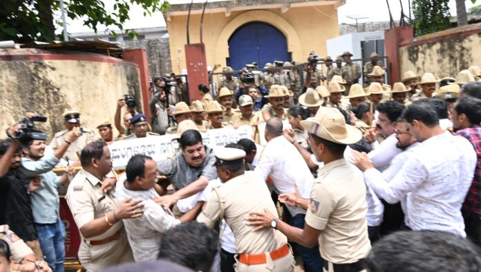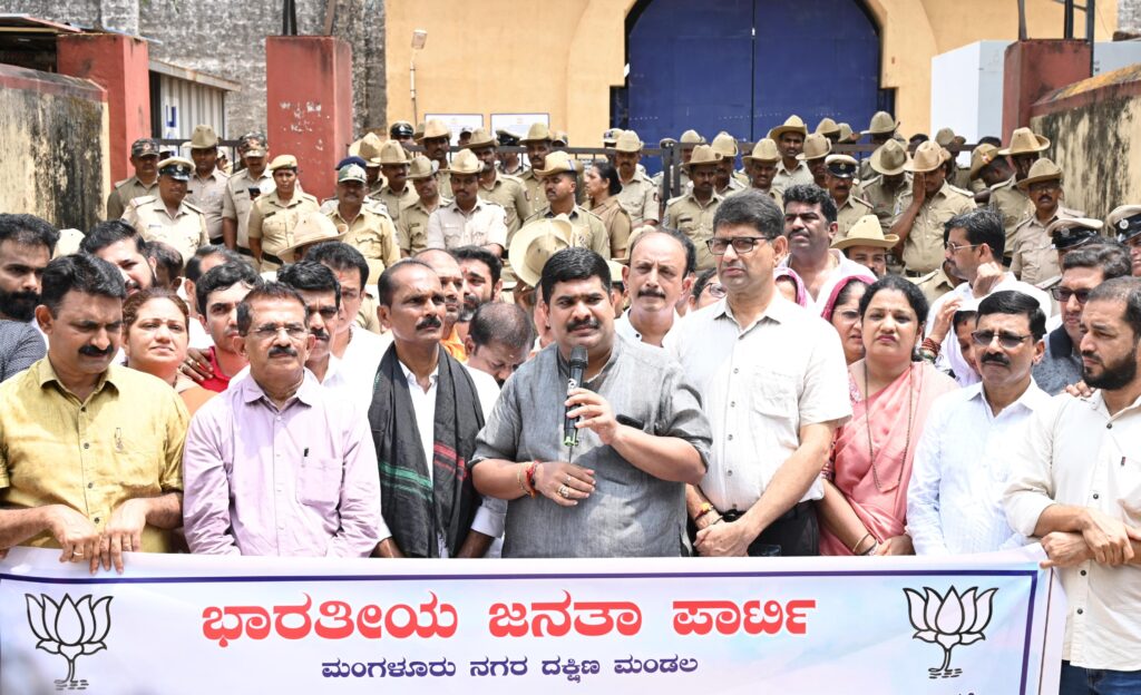 ಮಂಗಳೂರು ; ಜೈಲ್ ನ ಜಾಮರ್ ಸಮಸ್ಯೆಯನ್ನು ಖಂಡಿಸಿ ಬಿಜೆಪಿ ಮಂಗಳೂರು ನಗರ ದಕ್ಷಿಣ ಮಂಡಲ ವತಿಯಿಂದ, ನಗರದ ಜೈಲು ಮುಂಭಾಗ ರಾಸ್ತಾ ರೋಕೋ ಪ್ರತಿಭಟನೆ ನಡೆಯಿತು.