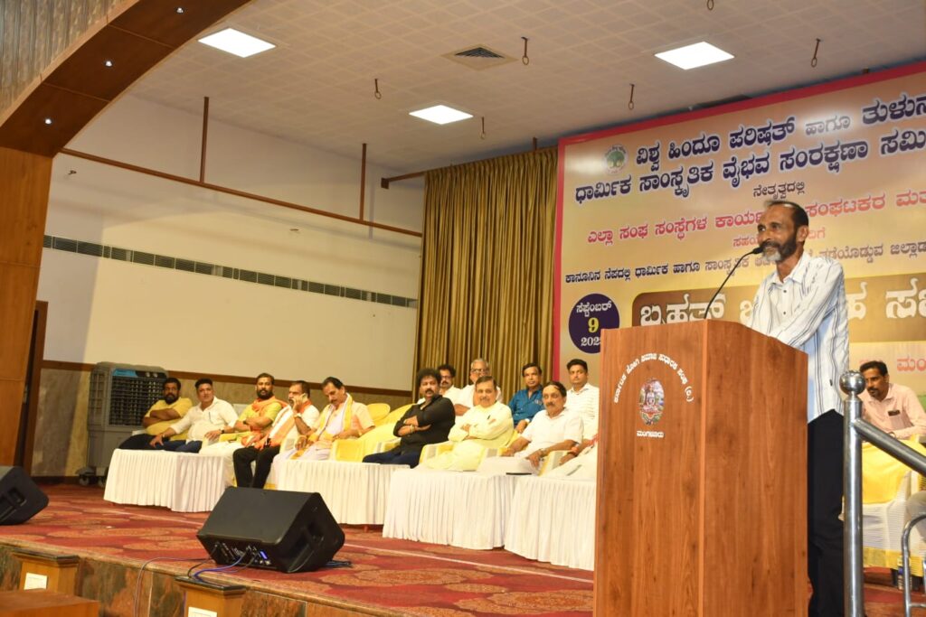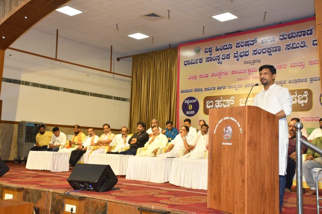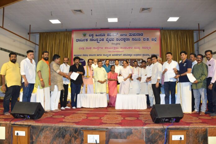 ಮಂಗಳೂರು ; ವಿಶ್ವ ಹಿಂದೂ ಪರಿಷದ್ ಹಾಗೂ ತುಳುನಾಡ ಧಾರ್ಮಿಕ ಸಾಂಸ್ಕೃತಿಕ ವೈಭವ ಸಂರಕ್ಷಣಾ ಸಮಿತಿ, ದ.ಕ. ಜಿಲ್ಲೆ ನೇತೃತ್ವದಲ್ಲಿ ರಂಗಭೂಮಿ ಕಲಾವಿದರು, ಯಕ್ಷಗಾನ ಕಲಾವಿದರು, ದೈವ ನರ್ತಕರು, ತುಳು ಚಿತ್ರರಂಗ ಕಲಾವಿದರು, ಸಂಗೀತ ಗಾಯಕರು, ನಿರೂಪಕರು, ಫೋಟೋಗ್ರಾಫರ್, ಸಾರ್ವಜನಿಕ ಗಣೇಶೋತ್ಸವ ಸಮಿತಿ, ಸಾರ್ವಜನಿಕ ಶಾರದೋತ್ಸವ ಸಮಿತಿ ಮತ್ತು ಎಲ್ಲಾ ಸಂಘ ಸಂಸ್ಥೆಗಳ ಕಾರ್ಯಕ್ರಮ ಸಂಘಟಕರು ಕಾನೂನಿನ ನೆಪದಲ್ಲಿ ಧಾರ್ಮಿಕ ಹಾಗೂ ಸಾಂಸ್ಕೃತಿಕ ಆಚರಣೆಗಳಿಗೆ ತಡೆಯೊಡ್ಡುವ ಜಿಲ್ಲಾಡಳಿತ ಕ್ರಮವನ್ನು ವಿರೋಧಿಸಿ ಬೃಹತ್ ಜನಾಗ್ರಹ ಇಂದು ಗೋರಕ್ಷನಾಥ ಮಂದಿರ, ಕದ್ರಿ ಪಾರ್ಕ್ ನಲ್ಲಿ ನಡೆಯಿತು.