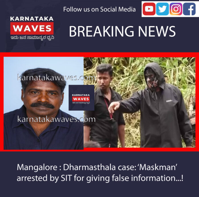 ಮಂಗಳೂರು : ಧರ್ಮಸ್ಥಳ ಪ್ರಕರಣಕ್ಕೆ ಸಂಬಂಧಿಸಿದಂತೆ, ಹಲವಾರು ಶವಗಳನ್ನು ಹೂಳಲಾಗಿದೆ ಎಂಬ ಆರೋಪ ಕೇಳಿಬಂದಿದ್ದು, ಎಸ್ಐಟಿ ಅಧಿಕಾರಿಗಳು ದೂರುದಾರ ‘ಮಾಸ್ಕ್ಮ್ಯಾನ್’ ಅವರನ್ನು ಸುಳ್ಳು ಮಾಹಿತಿ ನೀಡಿದ ಆರೋಪದ ಮೇಲೆ ಬಂಧಿಸಿದ್ದಾರೆ. ಆಗಸ್ಟ್ 23 ರ ಶನಿವಾರ ಬೆಳಿಗ್ಗೆ 11 ಗಂಟೆಗೆ ಎಸ್ಐಟಿ ಅಧಿಕಾರಿಗಳು ಬೆಳ್ತಂಗಡಿ ನ್ಯಾಯಾಲಯದ ಮುಂದೆ ಹಾಜರುಪಡಿಸಿದ್ದಾರೆ.
