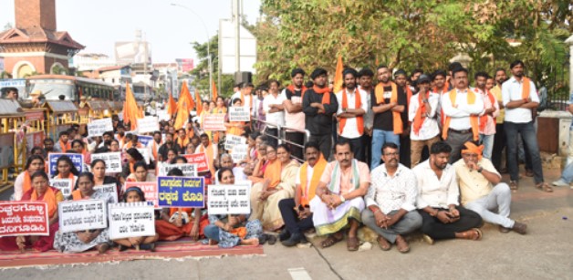 ಮಂಗಳೂರು : ಮಂಗಳವಾರ ಮಂಗಳೂರಿನ ಮಿನಿ ವಿಧಾನಸೌಧದ ಮುಂದೆ ವಿಶ್ವ ಹಿಂದೂ ಪರಿಷತ್ (ವಿಎಚ್ಪಿ) ಮತ್ತು ಬಜರಂಗದಳ, ಮಂಗಳೂರು ಘಟಕದಿಂದ ಪ್ರತಿಭಟನೆ ನಡೆಸಲಾಯಿತು.