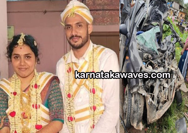 ಪೆರ್ನೆ ಸಮೀಪದ ಒಡ್ಯದಗಯ ನಿವಾಸಿ ಅನಿಶ್ ಕೃಷ್ಣ ಎಂಬವರ ಪತ್ನಿ ಮಾನಸ ಮೃತರು. ಘಟನೆಯಿಂದ ಗಂಭೀರವಾಗಿ ಗಾಯಗೊಂಡ ಅನಿಶ್ ಕೃಷ್ಣ ಅವರಿಗೆ ಕೂಡಲೇ ಖಾಸಗಿ ಆಸ್ಪತ್ರೆಗೆ ದಾಖಲು ಮಾಡಲಾಗಿದೆ.ಇದೇ ಸೆ.5 ರಂದು ದೇಂತಡ್ಕ ದೇವಸ್ಥಾನದಲ್ಲಿ ಇವರಿಬ್ಬರ ಮದುವೆ ನಡೆದಿತ್ತು. ಮದುವೆ ಕಾರ್ಯಕ್ರಮದ ವಿಚಾರವಾಗಿ ಕೆಲವೊಂದು ಲೆಕ್ಕಾಚಾರ ಮಾಡಲು ದೇಂತಡ್ಕ ದೇವಸ್ಥಾನಕ್ಕೆ ಬಂದಿದ್ದರು. ಬಳಿಕ ಬಿ.ಸಿ.ರೋಡ್ ಕಡೆಯಿಂದ ಮಂಗಳೂರು ಕಡೆಗೆ ಆಲ್ಟೋ ಕಾರಿನಲ್ಲಿ ನವದಂಪತಿ ವಾಪಾಸ್ ಮನೆಗೆ ಪ್ರಯಾಣಿಸುತ್ತಿದ್ದ ವೇಳೆ ಕಾರು ನಿಯಂತ್ರಣ ತಪ್ಪಿ ಡಿವೈಡರ್ಗೆ ಗುದ್ದಿ ಮುಂದುಗಡೆ ಹಾರಿ ಕೆಎಸ್ಆರ್ಟಿಸಿ ಬಸ್ ಗೆ ಡಿಕ್ಕಿ ಹೊಡೆದಿದೆ.ಸ್ಥಳಕ್ಕೆ ಮೆಲ್ಕಾರ್ ಟ್ರಾಫಿಕ್ ಪೋಲೀಸರು ಭೇಟಿ ನೀಡಿ ಪರಿಶೀಲನೆ ನಡೆಸಿದ್ದಾರೆ.