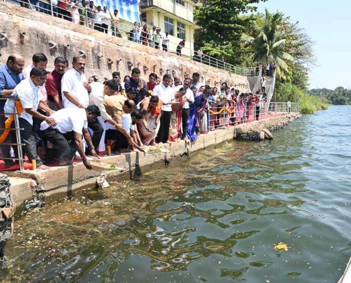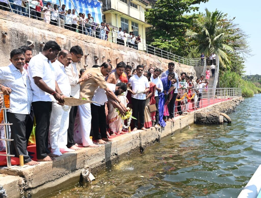 ಕಿಂಡಿ ಅಣೆಕಟ್ಟಿನ ಬಳಿ ಜನಪ್ರತಿನಿಧಿಗಳು, ಅಧಿಕಾರಿಗಳ ಜತೆ ಮಂಗಳವಾರ ಗಂಗಾ ಪೂಜೆ ನೆರವೇರಿಸಿ ಹಾಗೂ ನೇತ್ರಾವತಿ ನದಿಗೆ ಬಾಗಿನ ಅರ್ಪಿಸಿ ಅವರು ಮಾತನಾಡಿದರು.