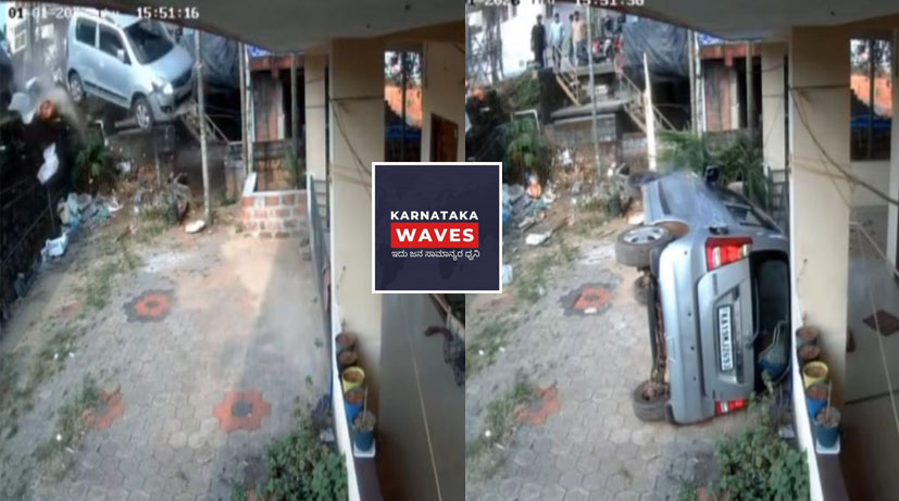 ಮಂಗಳೂರು : ಸಿನಿಮೀಯ ರೀತಿಯಲ್ಲಿ ಕಾರೊಂದು ರಸ್ತೆಯಿಂದ ಮನೆಗೆ ನುಗ್ಗಿದ ಚಿತ್ರಣ ಸಿಸಿ ಟಿವಿಯಲ್ಲಿ ಸೆರೆಯಾಗಿದೆ. ಲಾರೆನ್ಸ್ ಶ್ರೈನ್ ಮತ್ತು ಚರ್ಚ್‌ನ ಪ್ಯಾರಿಷ್ ಪಾದ್ರಿ ಫಾದರ್ ಆಂಡ್ರ್ಯೂ ಲಿಯೋ ಡಿಸೋಜಾ ಅವರು ಜನವರಿ 1 ರಂದು ಕಾರು ಅಪಘಾತದಲ್ಲಿ ಸಿಲುಕಿ ಪವಾಡಸದೃಶವಾಗಿ ಪಾರಾಗಿದ್ದಾರೆ. ಜನವರಿ 1 ರಂದು ಬೆಳಿಗ್ಗೆ ಮಂಗಳೂರಿನಲ್ಲಿ ಮರಕಡ ( ವಿಮಾನ ನಿಲ್ದಾಣ ರಸ್ತೆ )ಯಲ್ಲಿ ಈ ಘಟನೆ ನಡೆದಿದೆ . ಕಾರಿನ ಟೈರು ಸ್ಪೋಟಗೊಂಡ ಕಾರಣ ನಿಯಂತ್ರಣ ತಪ್ಪಿರಸ್ತೆ ಬದಿಯಿರುವ ಮನೆಗೆ ನುಗ್ಗಿ ಈ ಘಟನೆ ಸಂಬವಿಸಿದ್ದುಆದರೆ ಕಾರಿನಲ್ಲಿದ್ದ ಚರ್ಚ್ ಫಾದರ್ ಪವಾಡಸದೃಶವಾಗಿ ಪಾರಾಗಿದ್ದಾರೆ.