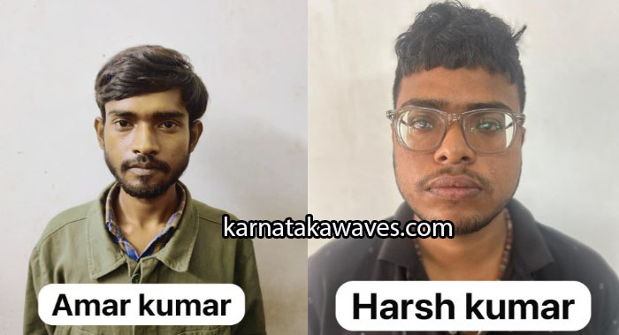 ಬಂಧಿತರನ್ನು ಬಿಹಾರ ರಾಜ್ಯದ ಹರ್ಷ ಕುಮಾರ್ (22 ವರ್ಷ) ಹಾಗೂ ಅಮರ್ ಕುಮಾರ (28) ಎಂದು ತಿಳಿದಿದೆ.