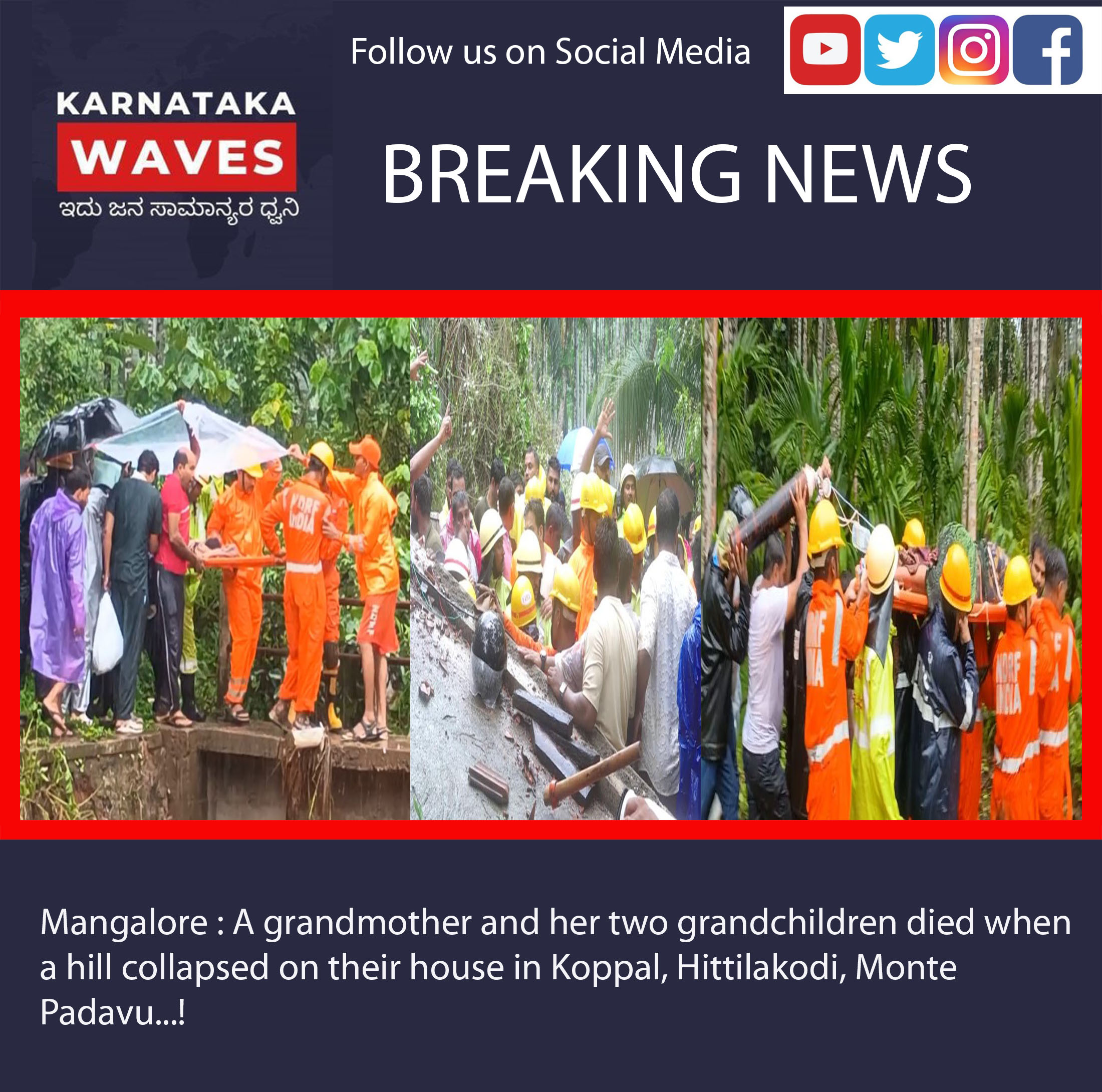 ಮಂಗಳೂರು : ಮೊಂಟೆ ಪದವು ಹಿತ್ತಿಲಕೋಡಿ ಕೊಪ್ಪಳದಲ್ಲಿ ಮನೆ ಮೇಲೆ ಗುಡ್ಡ ಕುಸಿದು ಅಜ್ಜಿ- 2 ಮೊಮ್ಮಕಳು ಸಾವು,ತಾಯಿಯ ರಕ್ಷಣೆ …!
