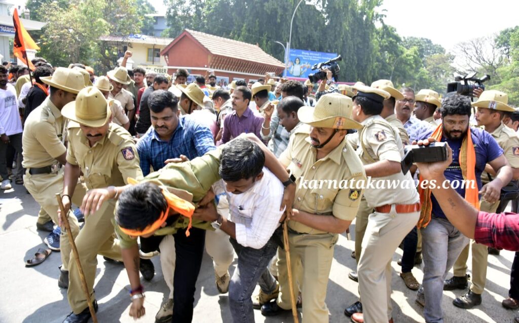 ಹೆಚ್ಚಿನ ಸಂಖ್ಯೆಯಲ್ಲಿ ಜಮಾಯಿಸಿದ ಪೊಲೀಸರು ಪ್ರತಿಭಟನಾಕಾರರನ್ನು ಪೊಲೀಸರು ವಶಕ್ಕೆ ಪಡೆದರು.