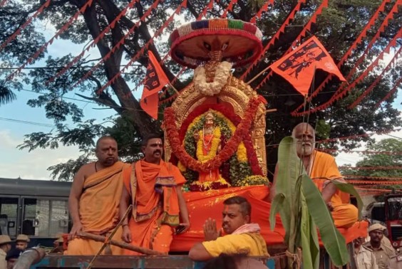 ಮೈಸೂರು : `ಹನುಮ ಮಾಲಾ ಸಂಕೀರ್ತನ ಯಾತ್ರೆ’ ಮತ್ತೆ ಸಂಘರ್ಷಕ್ಕೆ ಸಾಕ್ಷಿಯಾದ ಘಟನೆ ಬುಧವಾರ ಶ್ರೀರಂಗಪಟ್ಟಣದಲ್ಲಿ ನಡೆಯಿತು. ಬೆಳಿಗ್ಗೆ 10 ಗಂಟೆಗೆ ಶ್ರೀ ನಿಮಿಷಾಂಬ ದೇವ ಸ್ಥಾನದ ಆವರಣದಲ್ಲಿ ಹೆಚ್ಚಿನ ಸಂಖ್ಯೆಯಲ್ಲಿದ್ದ ಹನುಮ ಭಕ್ತರು ಸಾರ್ವಜನಿಕ ಸಭೆ ನೆರವೇರಿಸಿದ ಬಳಿಕ ನಿಮಿಷಾಂಬ ದೇವಸ್ಥಾನದಿಂದ 11ಗಂಟೆಗೆ ಬೃಹತ್ ಸಂಕೀರ್ತನ ಯಾತ್ರೆಯನ್ನು ಪ್ರಾರಂಭಿಸಿದರು.