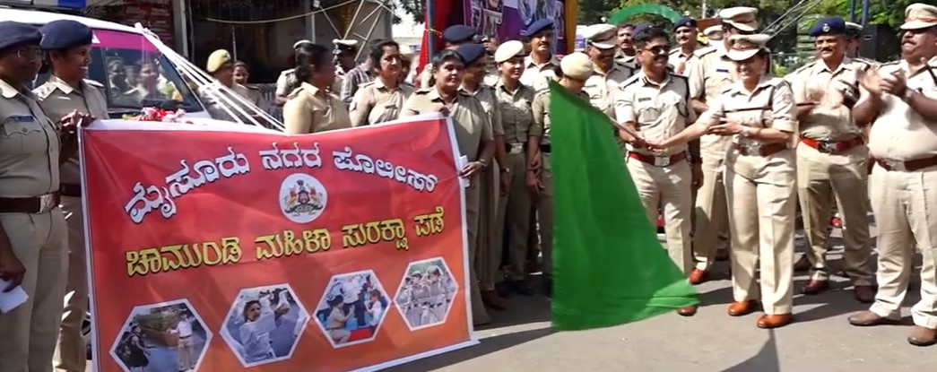 ಅರಮನೆ ನಗರಿಯಲ್ಲಿ ಮಹಿಳೆಯರು, ವಿದ್ಯಾರ್ಥಿನಿಯರ ಶೋಷಣೆಗಳನ್ನು ನಿಯಂತ್ರಿಸಿ ಅವರ ರಕ್ಷಣೆಗಾಗಿ ಚಾಮುಂಡಿ ಮಹಿಳಾ ಸುರಕ್ಷಾ ಪಡೆ ಗಸ್ತು ವಾಹನಕ್ಕೆ ನಗರ ಪೊಲೀಸ್​​​ ಆಯುಕ್ತ ರಮೇಶ್​​ ಬಾನೊತ್ ಅವರು ಚಾಲನೆ ನೀಡಿದರು. ಕಾರ್ಯಕ್ರಮದಲ್ಲಿ DCP ಜಾಹ್ನವಿ, ಹಿರಿಯ ಪೊಲೀಸ್​​ ಅಧಿಕಾರಿಗಳು, ಶಾಲಾ, ಕಾಲೇಜು ವಿದ್ಯಾರ್ಥಿಗಳು ಭಾಗಿಯಾಗಿದ್ದರು.