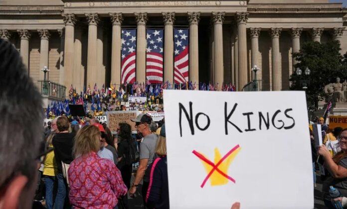 ವಾಷಿಂಗ್ಟನ್ : ಅಧ್ಯಕ್ಷ ಡೊನಾಲ್ಡ್ ಟ್ರಂಪ್ ಅವರ ನೀತಿಗಳ ವಿರುದ್ಧ ನ್ಯೂಯಾರ್ಕ್, ವಾಷಿಂಗ್ಟನ್ ಡಿಸಿ, ಷಿಕಾಗೋ, ಮಿಯಾಮಿ ಮತ್ತು ಲಾಸ್ ಏಂಜಲೀಸ್ ಸೇರಿ ದಂತೆ ಅಮೆರಿಕ 2700 ಕ್ಕೂ ಹೆಚ್ಚು ಕಡೆ ಶನಿವಾರ ನಡೆದ ನೋ ಕಿಂಗ್ ಪ್ರತಿಭಟನೆ ಯಲ್ಲಿ ಸುಮಾರು ಎಪ್ಪತ್ತು ಲಕ್ಷ ಜನರು ಪಾಲ್ಗೊಂಡರು.