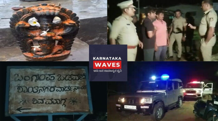 ಶಿವಮೊಗ್ಗ : ನಗರದ ರಾಗಿಗುಡ್ಡದ ಶಾಂತಿನಗರ ಬಂಗಾರಪ್ಪ ಬಡಾವಣೆ ಯಲ್ಲಿ ಅನ್ಯಕೋಮಿನ ವ್ಯಕ್ತಿ ಗಣಪತಿ ಹಾಗೂ ನಾಗರ ವಿಗ್ರಹ ದ್ವಂಸಗೊಳಿಸಿದ ಘಟನೆ ನಡೆದಿದೆ.ಬಡಾವಣೆಯ ಮುಖ್ಯ ರಸ್ತೆಯಲ್ಲಿ ಇತ್ತೀಚೆಗೆ ಪ್ರ ಗಣಪತಿ ವಿಗ್ರಹ ಹಾಗೂ ನಾಗದೇವ ವಿಗ್ರಹ ತಿಷ್ಠಾಪನೆ ಮಾಡಿದ್ದು ಅನ್ಯಕೋಮಿನ ವ್ಯಕ್ತಿಯಿಂದ ಈ ಕೃತ್ಯ ನಡೆದಿದೆ ಎಂಬ ಆರೋಪ ಕೇಳಿಬಂದಿದೆ.