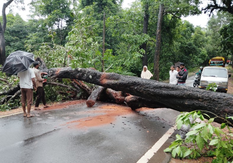 ಶಿವಮೊಗ್ಗ : ಗಾಳಿ ಮಳೆಯಿಂದ ರಸ್ತೆಗೆ ಬಿದ್ದ ಬೃಹತ್ ಮರ, ಶಿವಮೊಗ್ಗ-ಮಂಗಳೂರು ಹೆದ್ದಾರಿ ರಸ್ತೆ 4 ಗಂಟೆಗಳ ಕಾಲ ಸಂಚಾರ ಬಂದ್.