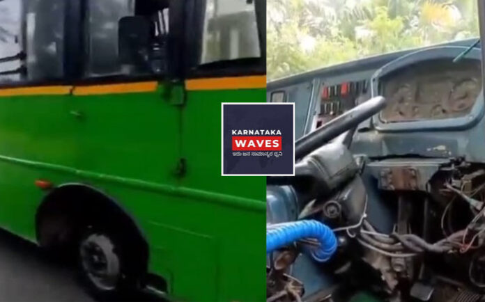 ಶಿವಮೊಗ್ಗ : ಚಲಿಸುತ್ತಿರುವಾಗಲೇ ತುಂಡಾದ ಕೆ.ಎಸ್.ಆರ್.ಟಿ.ಸಿ. ಬಸ್ ನ ಸ್ಟೇರಿಂಗ್, ತಪ್ಪಿದ ಭಾರೀ ದೊಡ್ಡ ಅನಾಹುತ.