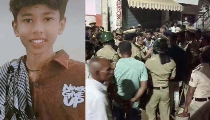 ಶಿವಮೊಗ್ಗ : ಮಂಗಳವಾರ ಸರ್ಕಾರಿ ಶಾಲೆಯ ಹೊರಗೆ 16 ವರ್ಷದ ವಿದ್ಯಾರ್ಥಿಯ ಕೊಲೆಯಾದ ನಂತರ ಸುಲೇಬೈಲು ಉದ್ವಿಗ್ನತೆ ಆವರಿಸಿದೆ. ಘಟನೆಗೆ ಸಂಬಂಧಿಸಿದಂತೆ ಪೊಲೀಸರು ಏಳು ಅಪ್ರಾಪ್ತ ವಯಸ್ಕರನ್ನು ಬಂಧಿಸಿದ್ದಾರೆ ಮತ್ತು ನಗರದಲ್ಲಿ ಶಾಂತಿ ಕಾಪಾಡಲು ದೊಡ್ಡ ಪಡೆಯನ್ನು ನಿಯೋಜಿಸಿದ್ದಾರೆ.